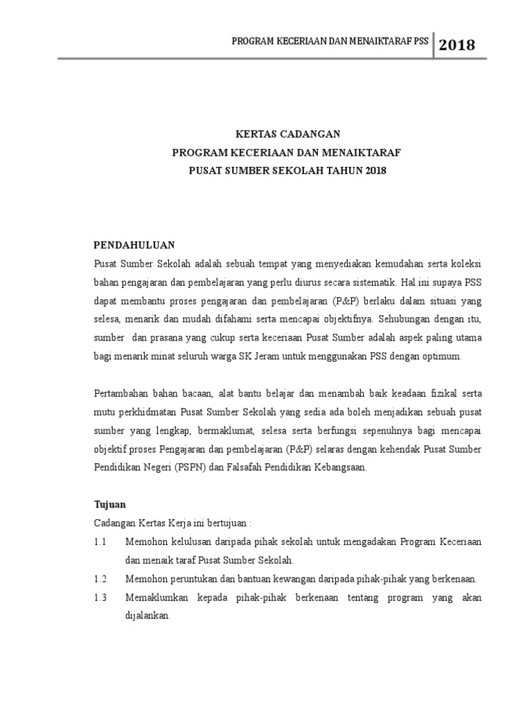 Kertas Cadangan Program Keceriaan Dan Menaiktaraf Pusat Sumber Sekolah Tahun 2018 Pdf